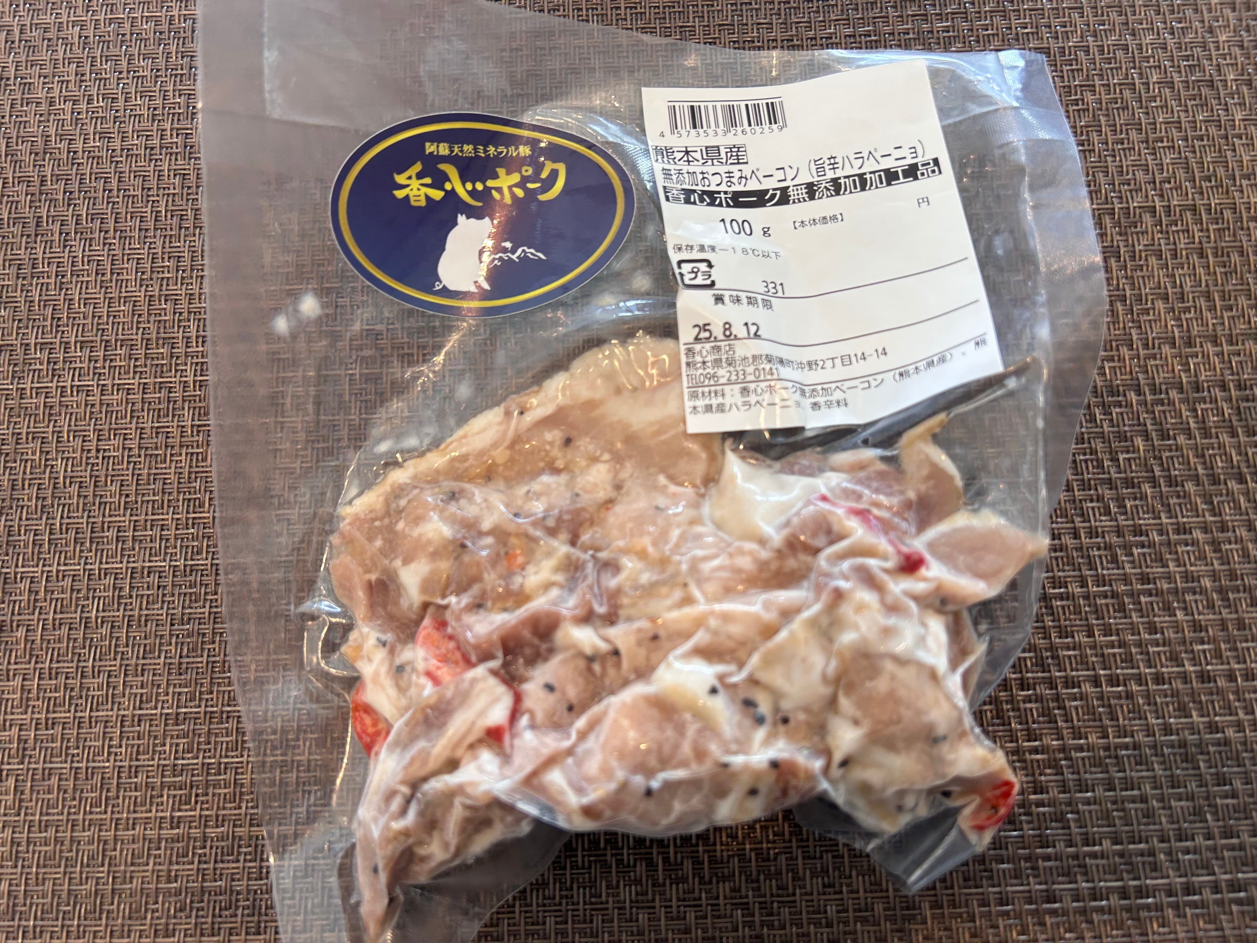 原材料名:香心ポークベーコン(熊本県産)、熊本県産ハラペーニョ