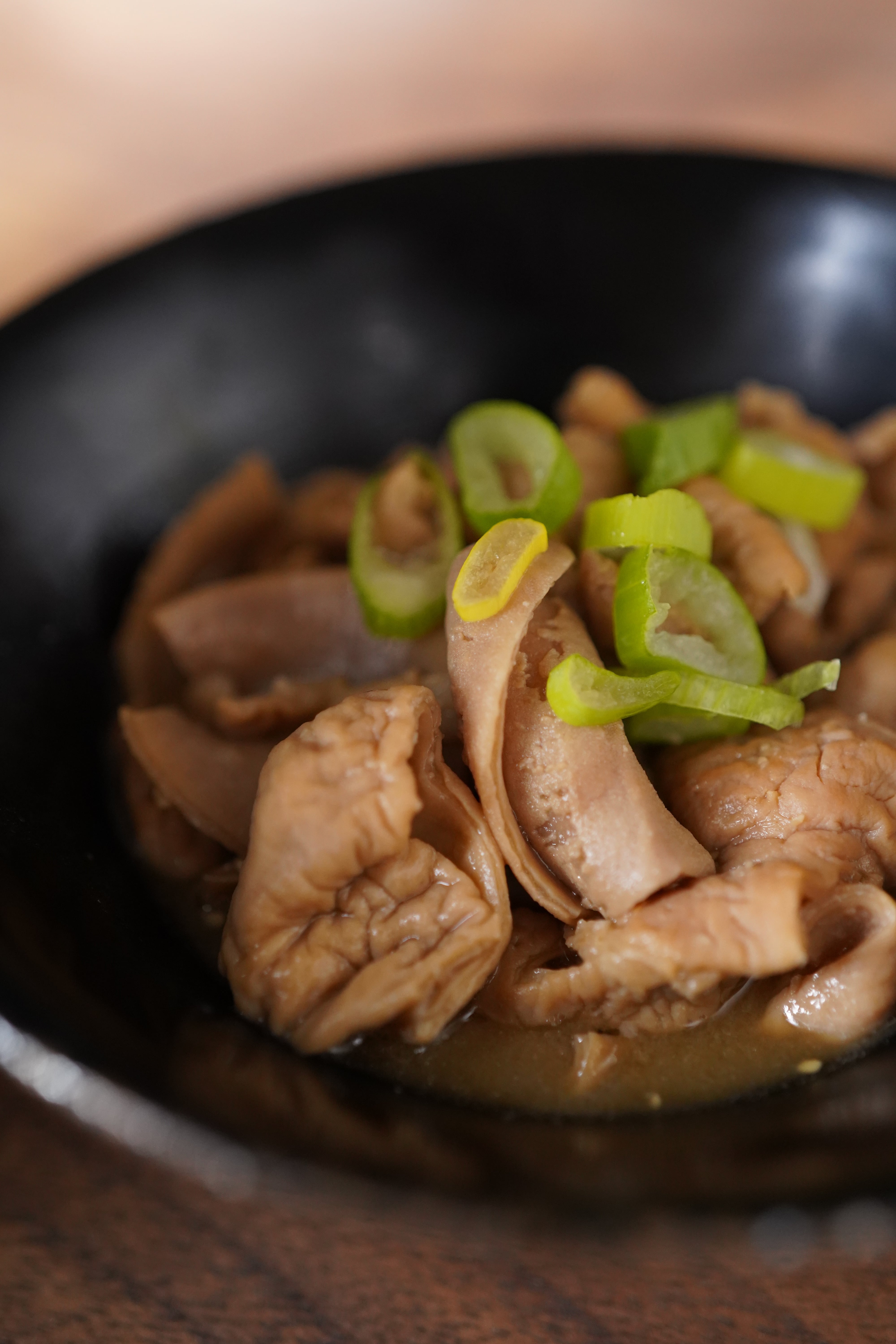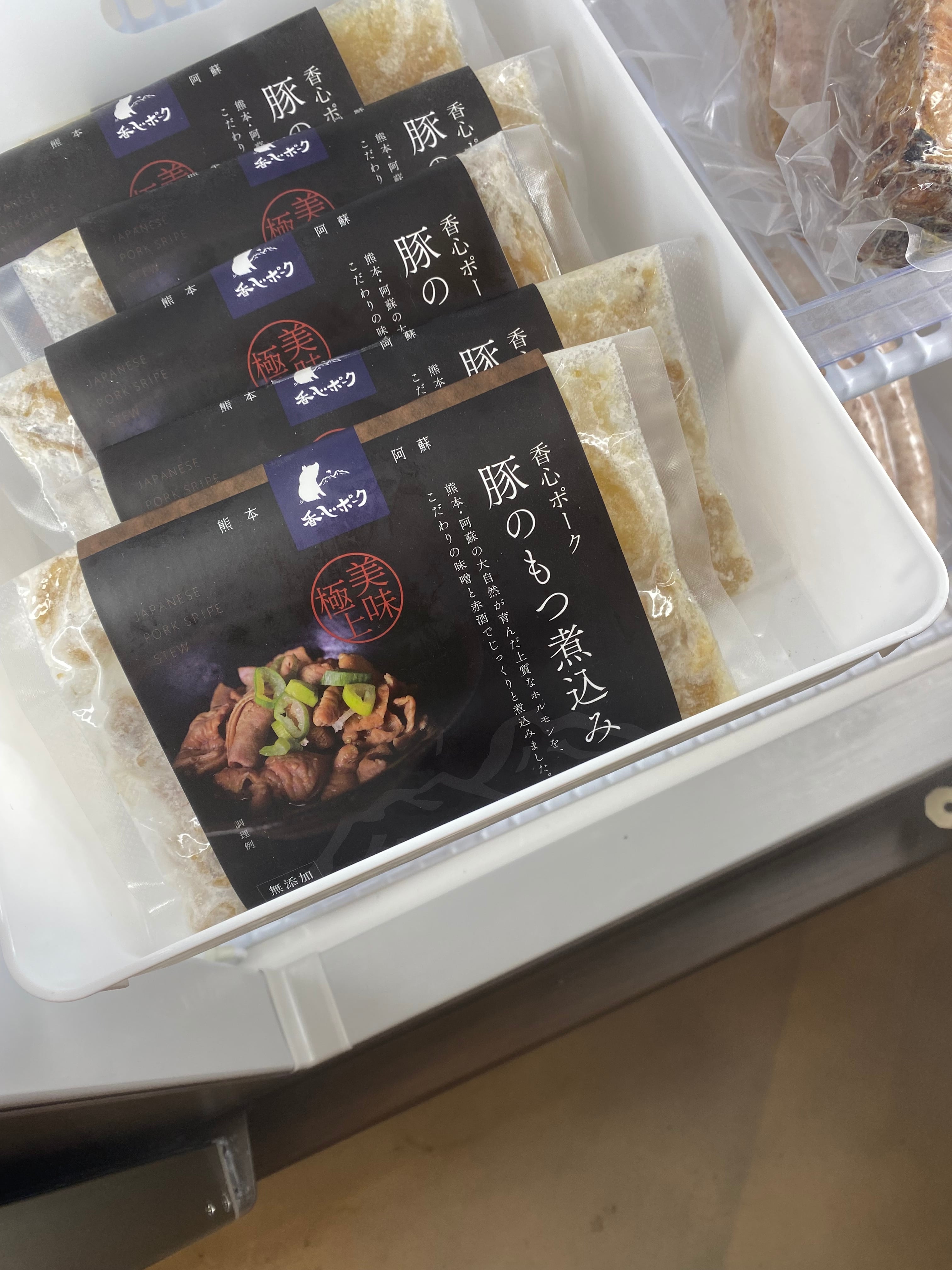 原材料:豚ホルモン(熊本県産)、みそ、赤酒、醤油、長ネギ、にんにく、生姜、黒糖