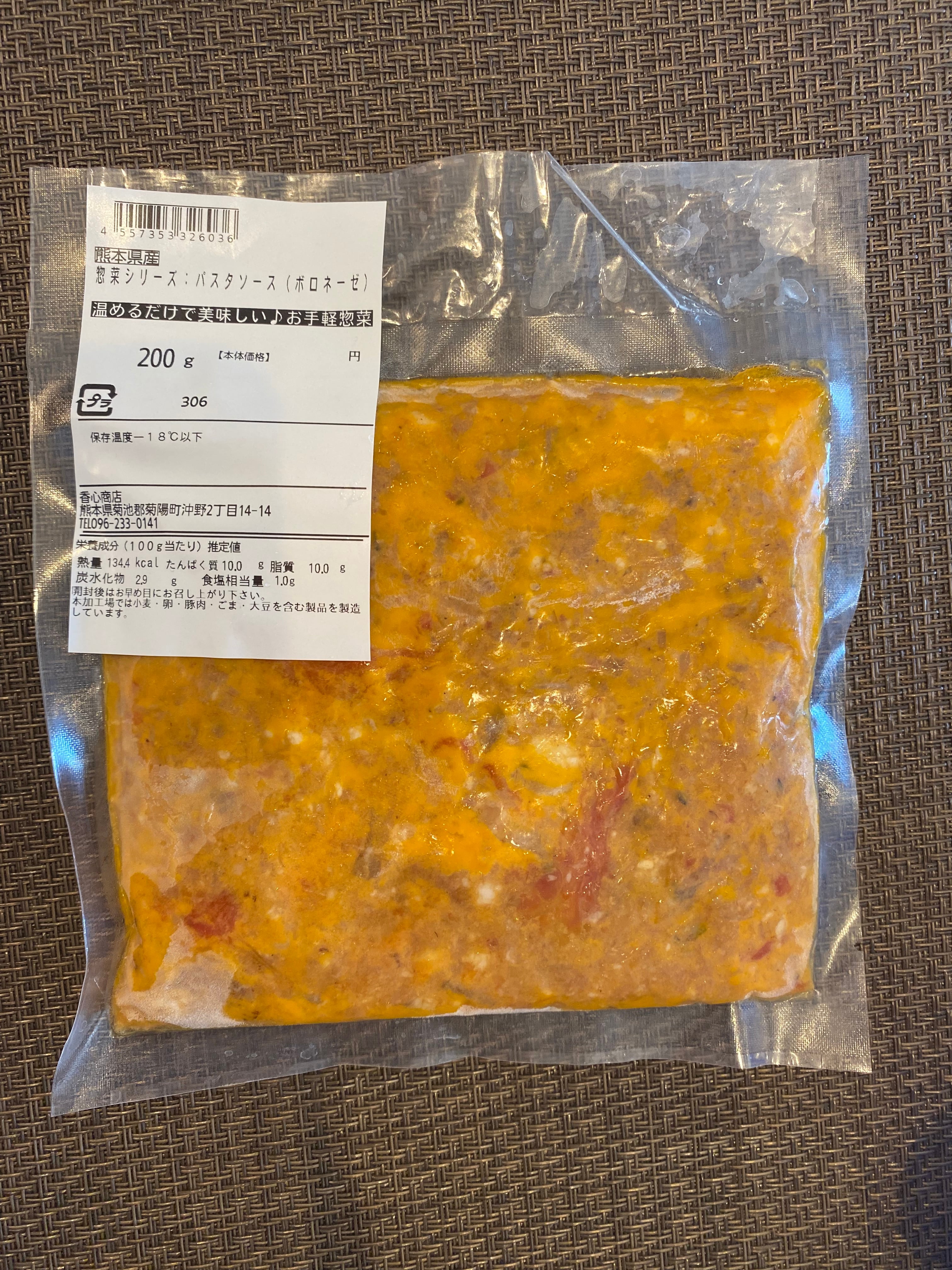 原材料名:豚肉(熊本県産)、香心ポークソーセージ(熊本県産)、キャベツ、玉ねぎ、ジャガイモ、トマト、ナス、パスタ、セロリ、塩、香辛料